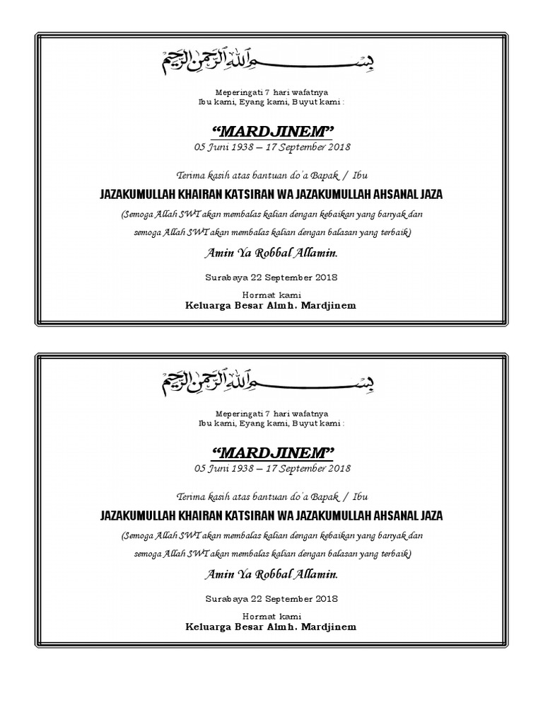 Template ucapan 7 hari meninggal. We did not find results for: Maybe you would like to learn more about one of these? Check spelling or type a new query.