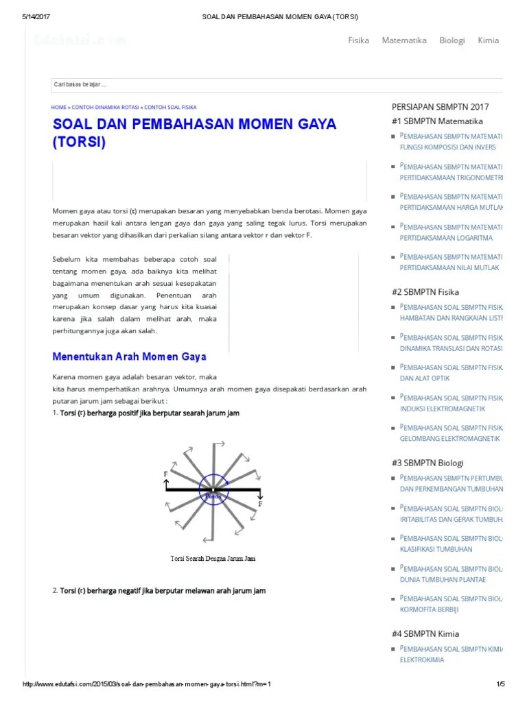 Soal Dan Pembahasan Momen Gaya : Soal Dan Pembahasan Ujian Nasional 2014 Momen Inersia Fisika Indonesia - Momen gaya momen inersia category: